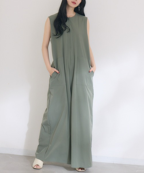 【KATHARINE ROSSセレクト】 暑い時期におすすめ!機能素材に落とし込んだきれいめモードなオールインワン [素材] ・さらりとした生地で蒸れにくく、接触冷感で暑い時期でも涼しく着用いただけます。 ・360°ストレッチ性のある生地。 ・しわが付きにくいのでデイリー使いにもおすすめ。 ・アクティブシーンでも活躍できる撥水機能付き。 ・ご自宅でお洗濯可能なのも嬉しいポイント! [デザイン] ・フロントのZIPで着脱可能。モードライクなデザインがコーディネートのワンポイントに。 ・全体的に落ち感のあるシルエットなので縦のラインが強調され、自然とスタイル良く見せてくれます。 ・パンツ部分はワイドめなので、暑い時期でも肌に張り付く不快感を軽減! ・サイドポケット付き。 [スタイリング] ・一枚でももちろん、袖にデザイン性のあるカットソーをインに合わせたり、カーディガンなどとレイヤードしたコーデにも◎着回し力抜群のアイテムです。 【お買い物をよりお楽しみいただくために】 ・商品のお気に入り登録をおすすめします! ♡マーククリックで登録できます。 完売カラーの再入荷や、ラスト1点になったときの通知、 セールの際に通知などお得な情報を受けることができます。 ・ブランドのお気に入り登録もご一緒にお願いいたします! 新商品や再入荷、などいち早くブランドの最新情報をお届けします。
