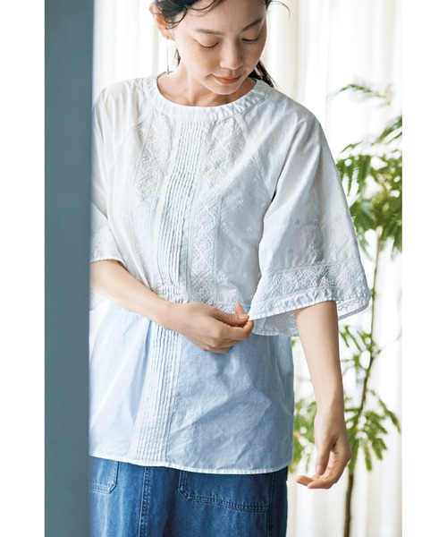 ヨーロッパの蚤の市で見つけたヴィンテージのブラウスのような雰囲気を目指して作っている「アンティークブラウス」。 今回は繊細なオリジナル刺しゅうを前身ごろや袖にたっぷりとほどこし、ヴィンテージ感を出しました。