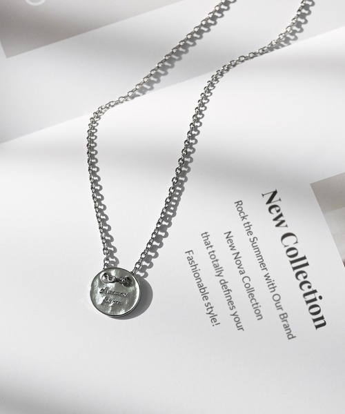 シンプルなチェーンに小さめのメッセージプレートを合わせたネックレスです。定番のシルバーとゴールドの2カラー展開です。シルバー系1&ゴールド系1:ドッグタグにタイプライターフォントシルバー系2&ゴールド系2:サークルプレートに筆記体フォントシンプルなコーディネートにも合わせやすくピッタリ◎ユニセックス商品なので男女問わず手に取っていただけます。