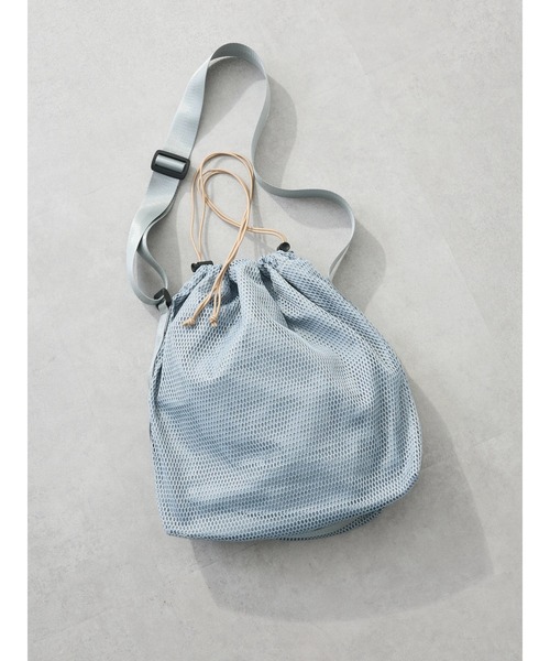 スポーティーな風合い漂うメッシュ素材で仕立てられたショルダーバッグ。巾着タイプになっているので、中身をしっかりと守ってくれます。小物類を整理できる内側のファスナーポケットも魅力。カジュアルなコーディネートにプラスしたスタイリングがおすすめです。●製品寸法:F:たて41cm よこ31cm マチ12cm 持ち手108.5cm備考: