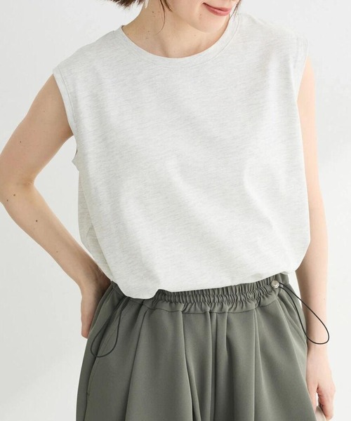 汗染み防止が施されたノースリーブプルオーバー。シンプルなデザインで着回しがしやすく、ワードローブに色違いでそろえるのもおすすめ。綿100%素材のさらりとした着心地の良さで、愛用率も高まりそうなアイテムです。透け感[無し] 裏地[無し] 伸縮性[やや有り] 光沢感[無し] 生地の厚さ[普通] 付属品[無し] ポケット[無し]●製品寸法:F:バスト52cm 着丈65cm 肩幅40.5cm 裾幅55cm備考:
