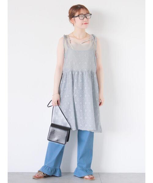 ハート柄ジャカードが可愛いミニキャミワンピース。ふわっと広がるシルエットと、肩のリボンが甘さをプラスするアクセントに。シンプルに着るのはもちろん、インナーを合わせたレイヤードコーデもおすすめ。コーディネートも愛らしくスタイリングが決まるアイテムです。-----------------------------------------------洗濯表記【洗濯機洗い可 石油系ドライクリーニング】透け感【あり】裏地【なし】-----------------------------------------------※商品画像は、撮影環境やお客様のご利用のPC・スマートフォンのモニター環境などにより実物と色味に差異がある場合がございます。
