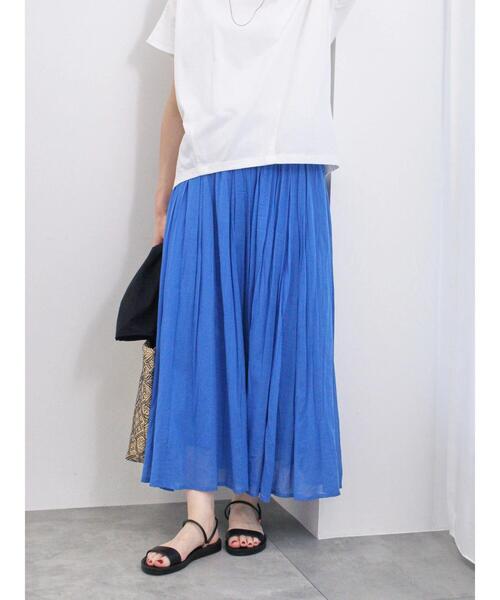 やわらかなボイル生地で仕立てられたスカート。 くしゅっとしたギャザーを寄せることにより、表情豊かな印象を与えます。 ゴム仕様のウエストがお腹を締め付けず、フィット感のある着心地を実現◎ デイリーユースや休日のお出かけにも大活躍してくれるアイテムです。 ※商品画像は、撮影環境やお客様のご利用のPC・スマートフォンのモニター環境などにより実物と色味に差異がある場合がございます。 【その他採寸】 F ウエスト:[ゴム仕様]64cm