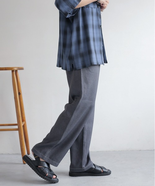 ーーー ■ポイント ・ステッチが目を引く、ややテーパードシルエットのスラックス! ・ウエストにゴムが入っているので、快適に着用可能!※ベルトループもあり ・程よくハリのある生地で仕上げ上品な印象 ■デザイン・シルエット ・ステッチが目を引く、ややテーパードシルエットのスラックス ・ウエストにゴムが入っているので、快適に着用可能※ベルトループもあり ・どんなトップスとも相性が良く合わせやすいシルエット ■素材 程よいハリ感があるポリエステル100%の素材。 高級感があり上品で清潔感のある素材で仕上げました〇 ====== ■参考サイズ S:~165cm M:~175cm L:175cm~ ====== ーーー ■スタイリング オーバーサイズやコンパクトなどトップスのシルエットを選ばない万能スラックス ステッチがワンポイントになる為、シンプルなアイテムとの相性も〇