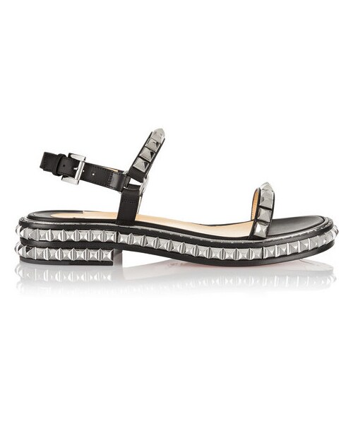 Crafted with a supportive platform and heel, Christian Louboutin's studded leather sandals are statement-making but effortless to wear. Style this hand-finished pair with your jeans rolled. Heel measures approximately 30mm/ 1 inch Black leather Buckle-fastening slingback strap