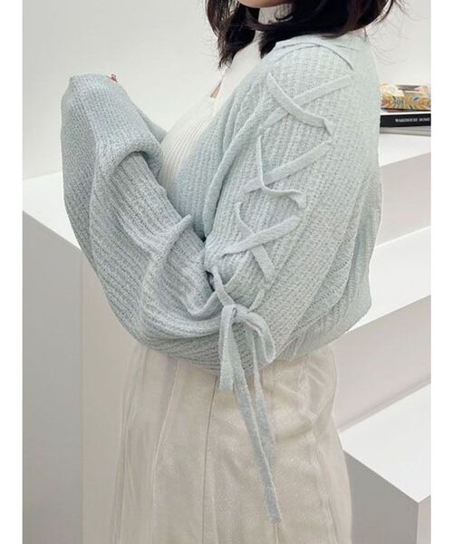 袖に施されたレースアップが、トレンドのバレエコアをプラスするニットボレロ。ほんのりしゃりっとしつつ、柔らかな風合いが、残暑厳しい秋の羽織として万能です。 インナーの袖の形を気にせずに羽織れるように、袖幅サイズを大きめにデザインしております。 ▼スタイリング クロップド丈なので、フラワープリントワンピースや、ハイウエストのボトムとのコーディネートがおすすめです。 【 ZOZOTOWNでお買い物を楽しむ便利機能 】 ♡商品のお気に入り登録 完売カラーの再入荷時、ラスト1点の時、セール開始時にお知らせします。 予約アイテムが入荷して通常販売になった時もお知らせしてくれます!その他お得な通知も盛りだくさんです。 ♡ブランドのお気に入り登録 新商品や再入荷、セール情報など、いち早くブランドのお得な情報を受け取ることができます。 ぜひご活用ください!