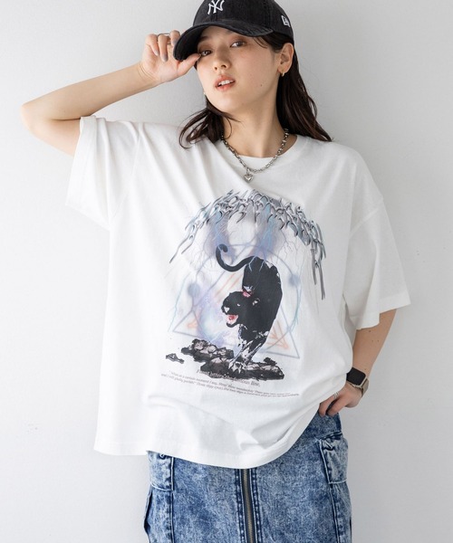 ヴィンテージライクな雰囲気漂う、トレンドT! ■おすすめスタイリング ☆トレンドの古着ライクコーデには・・・ デニムやワークスカートと合わせ、ロックな雰囲気に◎ アウトでルーズな着こなしはもちろん、タックインすればすっきり見え! ☆ワンランク上の一癖コーデには・・・ シアートップスやレースワンピをレイヤードしても可愛い◎ 合わせ次第で、大人カジュアルなスタイルが完成します! ーーー ■ポイント オリジナルで作成した、ロックテイストロゴを使用した加工プリントTシャツ。 それぞれ豹と鷲をモチーフにし、古着のような雰囲気に◎ ブラックはピグメント加工、ホワイトはウォッシュ加工を施し、程よいヴィンテージ感を演出。 肩のラインを落としドロップショルダー仕様にすることで、リラックスした着心地です◎ トレンドのルーズサイズに仕上げ、ユニセックスで着られるのも嬉しいポイント! 腰回りも隠れる丈感と、五分袖で仕上げることで体型カバーも可能です! ■素材 通気性・吸湿性・耐久性に優れた、肌触りの良いコットン100%の生地を使用。 素肌に着用しても心地よい仕上がりです!