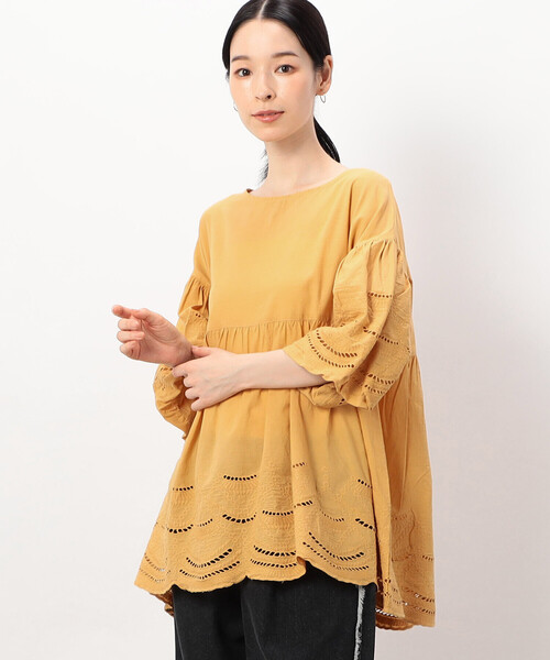 ◆ONIGIRI(おにぎり)のシフリー ボリュームスリーブ プルオーバーブラウス◆ 《デザイン》 ナチュラルなインド綿に部分刺繍を施した ボリューム感のあるプルオーバーブラウスです。 刺繍入りのボリュームのある袖は裏側にボイル素材を使い バルーン袖にしてデザインポイントにしました。 身頃はバスト下にギャザーを取りボリュームを出しています。 裾のスカラップ状にしたカットワーク刺繍が華やかで一枚で映えるブラウスです。 《素材》 インド綿のボイル素材です。 柔らかい風合いとナチュラルなシワ感が特徴です。 綿100%なので吸湿・速乾性にすぐれていています。 部分的にカットワークレースと刺繍を組み合わせた (インドでは刺繍した素材をシフリーと言います) 見た目も素敵で価値観のある素材です。 ………………… 厚さ:普通 伸縮性:なし 光沢感:なし 裏地:なし ポケット:なし 洗濯方法:手洗い可 ………………… ※画像の商品はサンプルとなりますので実際の商品と仕様、加工、サイズが若干異なる場合がございます。 ※こちらの商品はFIVE FOXes独自の採寸方法となっています。 本サイトのサイズガイドと採寸方法が異なる場合がありますのでご了承ください。