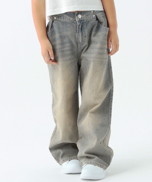 ーーー ◆デザイン デイリー使いにピッタリなデニムパンツ。 ウエストはホックデザインで大人顔負けのオシャレさに。 ホックは外せない仕様となっております。 ワイドのゆるいシルエットも魅力。 ウエストはスナップボタン+ファスナーで着脱もラクラクです◎ 定番のライトブルー、ブラックデニムと こなれ感のあるオーバーダイ加工が高見え間違いなし。 ◆素材 オールシーズン着用いただけるデニム素材 柔らかい生地感で履き心地バツグン。 ーーー ◆スタイリング どんなアイテムとも合わせやすい万能アイテム! やロゴTシャツと合わせるストリートコーデや、 トレンドのチュールトップス合わせがおススメです。 コンパクトトップスと合わせるとバランスの良いスタイルに! ◆商品仕様 ウエストゴム:あり(うしろ) アジャスター:なし ファスナー:あり ポケット:あり 裏地:なし ☆お名前タグ付き お下がりやお譲りなどで長く着用いただけるよう 切り取り線付きのデザインにしております。 ※撮影環境によりカラーが異なって見える場合があります。あらかじめご了承ください。 ▶▶INFORMATION◀◀ ■商品のお気に入り登録(♡マークをクリック!) 完売カラーの再入荷通知やお得なタイムセール通知などを受け取ることができます♪ ■ブランドのお気に入り登録 新商品や再入荷など、ブランドからのおトクな情報を受け取ることができます♪ あわせてぜひご登録ください!
