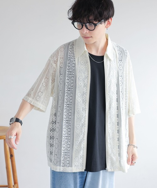 ーーー ■ポイント ・サラッと羽織れる夏にぴったりな季節感溢れるレースシャツ! ・幾何学模様のレースデザインで目を引く一着に〇 ・トレンド感溢れるルーズシルエット/オーバーサイズ ・合わせるインナーをタンクやTシャツに変更することで幅広いシーズンで着用可能! ■デザイン・シルエット ・今季トレンドのレース生地を使用した季節感あふれる一枚。 ・オーバーサイズ/ビックシルエットでお作りしており、程よい透け感がより綺麗に映える仕上がり。 ・フロントはジップデザインを採用し、夏場でも涼しくジャケットのような雰囲気をお楽しみ頂けます。 ■素材 さらっとラフに羽織れるナイロン100%のレース生地。 風通しもよく、夏に最適な着用感を実現〇 ====== ■参考サイズ M:~175cm L:175cm~ ====== ーーー ■スタイリング 今季マストトレンドのレースシャツ。 Tシャツ合わせは勿論、タンクトップやノースリーブ合わせは涼しく夏にぴったし。 スラックスと合わせた綺麗めコーデから、デニムやカーゴパンツなどのカジュアル合わせまでどんなボトムスとも相性抜群!