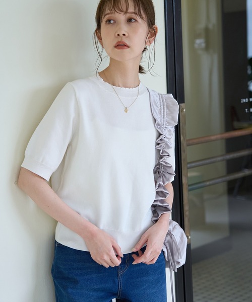 どんな場面にも馴染む万能さが魅力の5分袖ニット。【素材感】・肌触り柔らかなシルク混素材。【デザイン・シルエット】・5分袖のボトルネックプルオーバー。・袖口と裾はリブ編みでフィットし、全体的にすっきりとした印象。【カラー】・ブラック、グレー、オフホワイト、ブルーの4色展開。・グレー系(09)はベージュがかったグレージュのような色味になります。【スタイリングポイント】・Iラインスカートでシャープに着こなすと大人っぽいスタイリングに。・軽やかなプリントスカートを合わせるのもおすすめ。・ハットやバッグで遊びをプラスしても。・同シリーズでカーディガン(品番:GDK54260)も展開しているので、アンサンブルのように合わせるのも◎-----------------------------裏地:なし透け感:オフホワイト(15)はややあり伸縮性:あり生地感・厚さ:やや薄手季節:秋・春-----------------------------※撮影時の光、お使いのモニター環境によって色の見え方が違う場合がございます。※モデル身長:165cm 着用サイズ:38