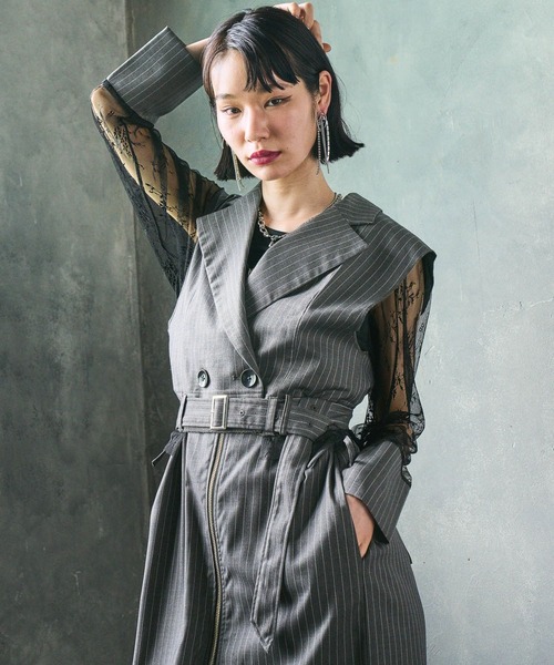 ーーー TR生地×レースがモードで上品な大人ショートジャケット ーーー point □袖、裾にレースを使用したデザインショートジャケット □肩回りのシルエットがしっかり出るパターンで作成し、よりクールな印象に □綺麗めなTR生地×レース生地で上品で高級感のあるデザイン □ベストにレーストップスを重ねたように見え、透けているため夏も秋も着やすい styling ショート丈で、ハイウエストのボトムと合わせるとスタイルアップ効果抜群です。 夏はタンクトップなどのノースリーブの上からさらっと羽織るのがおすすめです◎ set item 同生地のキャミワンピースとセットアップで着ると、更にモード感たっぷりなスタイリングになりおすすめです。 セットアップ対応アイテムはコチラを検索→【132187】 【EDGY MODE】 Concept 「マニッシュとフェミニン」「繊細と大胆」 相反するファッション要素をつなぎ合わせることで 前衛的かつ、エッジの効いた粋なスタイルを提案。 HAREの持つクールな印象をより強調し “ブラック”をキーカラーに、 多様なマテリアル×デザイン性による ここにしかないアクセントが光る新たなラインが誕生。 ※撮影環境により、光の当たり具合で 色味が違って見える場合があります。 あらかじめご了承下さい。