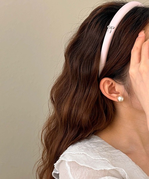 《ガーリームードをプラスする♡リボン付きカチューシャ》 ■デザイン ・高級感のある生地に小さいリボンパーツが付いたカチューシャです。 ・スタイリングの邪魔をしない、細いカチューシャでデイリーに取り入れやすいアイテム♡ ・ワンポイントなので甘くなり過ぎず、大人の方にもおすすめです◎ ・韓国ファッションやバレエコアスタイルにもぴったり♡ ■素材 ポリエステル&アクリル ■スタイリング オーバージャケットやカジュアルTシャツのマニッシュスタイルのポイントに 付けてもおしゃれなバランスに仕上がります。 タイトなまとめ髪や、ダウンスタイルにも合わせやすい◎ ウェーブヘアーやミニスカートでフェミニンな着こなしにプラスするのもおすすめ♪ ------------------------------- @ulysses.ec.official インスタオフィシャルアカウントにてアイテム情報更新中◎ 是非チェックしてみてください。