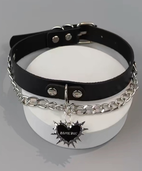 『NOVESSEL/ノベセル』より、ハートチェーンチョーカーの入荷です。 マットなフェイクレザー素材に、ハート+チェーンの装飾をあしらったチョーカー。 パンク、ロック系のスタイリングは勿論、ストリートやグランジ系のアクセントにもおすすめ◎ ユニセックスとしても着用可能ですので、是非お試しください!
