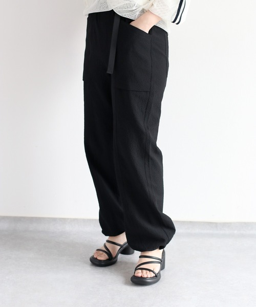 梅雨・猛暑対策もバッチリ♪CEPO自慢の機能素材の新作イージーパンツ◇Point◇CEPO自慢の高機能が備わったイージーパンツ。梅雨・猛暑対策も出来る速乾性・通気性・イージーケアの優秀素材!リサイクルポリサッカー地を使い、軽く涼しい着心地。ウエストはゴム仕様、裾にもドローコードを施し、シルエットの変化も楽しめます。スポーティーなデザインと、スタイルアクセントにもなる今夏の一押しアイテムです◎◇Material◇リサイクルポリ100%のイージーケア素材。ご家庭でのお洗濯も可能です。吸水、速乾性にも優れています。※サイド、バックポケットあり。◇Coordinate◇裾はそのままでワイドストレートのシルエットを楽しんでもOK。裾のドロストコードを絞ってサンダルやスニーカーでラフに合わせるのもおすすめ◎デザイン性の高いアイテムなので、トップスはシンプルTシャツでもこなれ感が出せます。※照明や天候により実際の色味と異なって見える場合がございます。ご了承くださいませ。