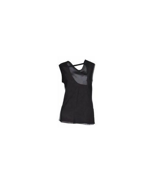 ILARIA NISTRI Tops. jersey, crêpe, raw-cut hem, solid color, round collar, sleeveless, no appliqués, no pockets. 100% Silk, Lambskin