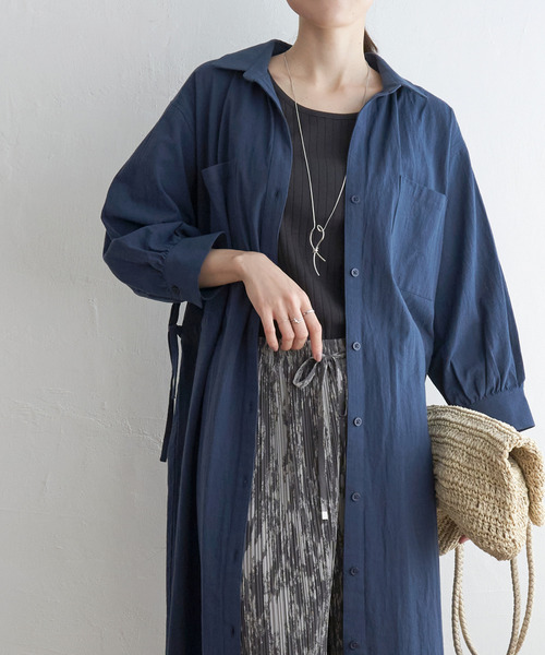 サイドにドロストリボンが付いたシャツワンピース。 7分袖のためロングシーズン活躍します。 【素材】 加工による表面感があり、軽量で涼し気な晩夏にピッタリのカジュアル素材。 【デザイン】 体離れの良い、たっぷりとしたシルエット。 一枚でも羽織りでも使えるワンピースです。 【ikkaポイント】 胸元のあきが涼し気でヌケ感のあるライトな感覚のシャツワンピース。 ウエストにはドロスト付きでお好みのシルエットに調節可能。 すぐに使える7分袖は夏から秋にかけてぴったり。 たっぷりとしたシルエットで羽織としても使えます。 【おすすめコーディネート】 キッズサイズも展開しているため、親子おそろいでコーディネート可能です。 ・8分袖スキッパーシャツワンピース(120~160cm) 品番 13260382 親子お揃い、親子おそろい、親子リンク [洗濯方法]洗濯の際はネットを使用してください