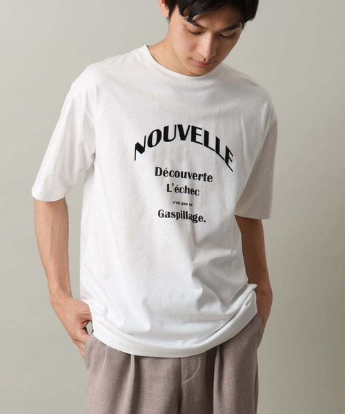 ◆毎日を快適に過ごせる接触冷感機能付き!トレンドのカレッジ風ロゴプリントカットソー。◆【デザイン】シンプルで上品見えなロゴプリント。アーチ状のロゴに部分的にフロッキープリントを施し、程よくインパクトがありながら着やすいデザインに仕上げました。シルエットはゆとりのあるセミワイドシルエットで、大きすぎずシャツのインナーにも使いやすい万能アイテムです。【素材】コットン100%の天竺素材にバイオ加工を施した毛羽の少ないきれいな表面感でなめらかな肌触りが特長です。接触冷感機能がついているため夏の暑い時期でも涼しく着用頂けます。【スタイリング】一枚で着てもサマになり、シャツとのレイヤードスタイルにもバランスのよいカットソーです。ボトムはきれい目な雰囲気であればスラックスデザイン、カジュアルに着こなすのであればゆとりのあるタック入りパンツにインするスタイルもオススメです。----------------透け感:ややあり裏地:なし伸縮性:あり光沢感:なし生地の厚さ:普通----------------≪お気に入り登録機能の使い方≫■商品のお気に入り登録(ハートマークをクリック)再入荷通知や値下げ等、お得なご案内を受けることができます。----------------※お使いの液晶環境により、色味が多少異なる場合がございます。予めご了承ください。※サンプルにて撮影しておりますため、お届けの商品と仕様が若干異なる場合がございます。予めご了承ください。
