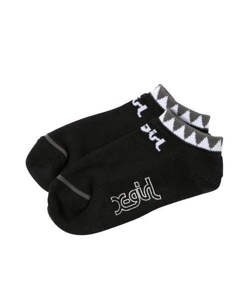 履き口がポップなカラーリングがポイントのくるぶし丈のソックス。足の甲部分にはマイクミルズロゴをジャガードで配置。足裏にはロゴのプリント入り!