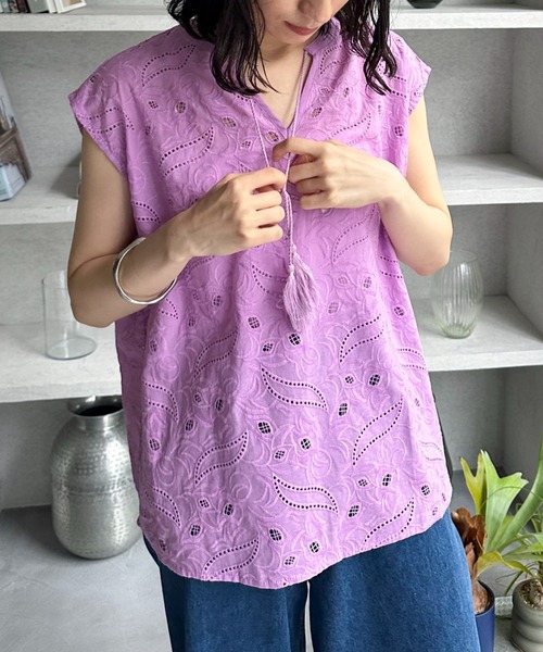 2024SS シーズンムード高まるコットンレースブラウス 【point】 ・コットンレースの繊細な刺繍がこれからの季節にぴったり ・大人が着られる甘すぎないデザイン ・フレンチスリーブが肩回りをさりげなくカバー ・デニムやワイドパンツとのスタイリングがオススメです 【fabric】 ・綿100%のナチュラルな素材感 ・ご自宅でのお手入れ可能 透け感:ホワイトあり 裏地:なし 伸縮性:なし 光沢感:なし 生地の厚さ:普通 ■お気に入り登録がオススメです!■ 《商品のお気に入り登録》 カラー・サイズ選択の横の「♡」をクリックで簡単に登録できます 完売カラーの再入荷や在庫が1点になったとき、セールになったときに通知をお届けします 《ブランドのお気に入り登録》 ページ上部のブランド名の「♡ お気に入りブランドに追加」をクリックで簡単に登録できます 新商品の情報やイベントなどお得な情報をいち早くお届けします 是非、ご登録お願いします♪ ※取り扱いについては、商品についている品質表示でご確認ください。 ※照明の関係により、実際より明るく見える場合がございます。またパソコンなどの環境により、製品と画像のカラーが若干異なる場合がございますので、予めご了承くださいませ。