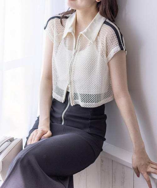 トレンド感のある!ライン入りダブルジップ半袖メッシュカットソー【デザイン】トレンド感のあるダブルジップやラインがほどこされているカットソーです。さらにメッシュ生地やショート丈から暑い夏でも涼しく着ていただけます♪コンパクトなシルエットなので、スタイルアップ効果も抜群です!【素材感】肌触りの良い綿素材伸縮性:若干あり/ 透け感:あり/ 裏地:なし手洗いによる洗濯可 / ドライ・ウェットクリーニング可【コーディネート】キャミソールだけでなく、Tシャツもレイヤードしてコーデをお楽しみいただけます♪ボトムスはデニムやカーゴパンツなどカジュアルなアイテムがオススメです◎【※お取り扱い上のご注意】1:モニター環境等により実際の商品と多少色味が異なって表示される場合がございます。予めご了承下さい。2:屋外で撮影された商品は、天候により多少実際のカラーと異なる場合があります。商品のカラーはトルソー(マネキン)の商品画像をご参照ください。3:濃い色の商品は、お洗濯や摩擦等による移染にご注意ください。4:末永くご愛用頂く為に、アテンションタグ・洗濯ネームを必ずご確認の上、着用又はお取り扱い下さい。5:生産時期により、色、サイズ、デザイン、素材の質感が多少が異なる場合がございます。あらかじめ御了承下さいませ。