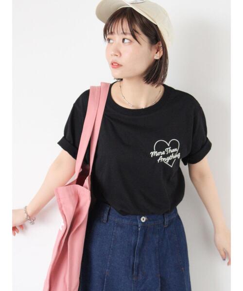 ワンポイントのハートロゴ刺しゅうがキュートなアクセントをプラスするTシャツ。 クルーネックのベーシックなシルエットで、どんなボトムスともバランスよくスタイリングすることができます。 コーディネートのポイント使いにも活躍してくれるアイテムです。 ※商品画像は、撮影環境やお客様のご利用のPC・スマートフォンのモニター環境などにより実物と色味に差異がある場合がございます。