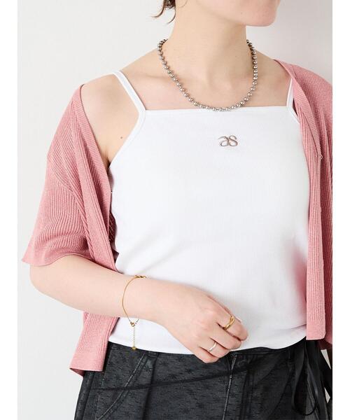 刺しゅうのワンポイントが施されたシンプルデザインのキャミソール。 1着でもさらっと着られるカップ付きタイプがうれしい◎ デコルテも引き立つスクエアネックで、大人っぽい印象を演出してくれます。 旬のシアートップスと合わせたりと、様々な着こなしのアレンジも楽しめるアイテムです。