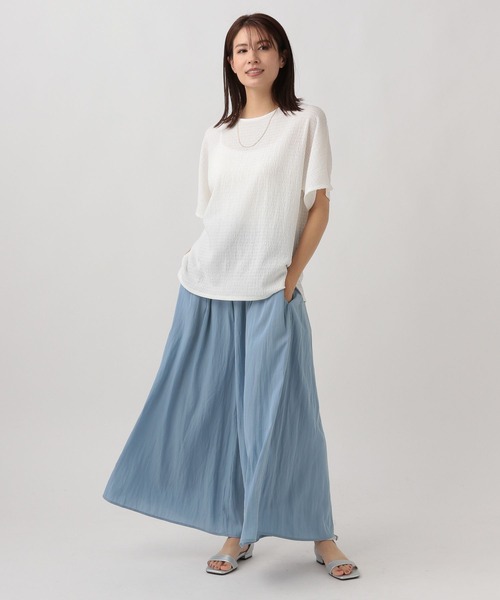 大人の映えTシャツが登場! ポコポコした表面感が特徴のシャーリングの素材を生かしたシンプルなTシャツ。 ーーー ワイドパンツやナロースカートと合わせてワンツーコーデでも華やかに決まります。 【素材】 ・表面感のある素材 【悩みに“効く”ポイント】 ・身体のラインを拾わずに体型をカバーできる