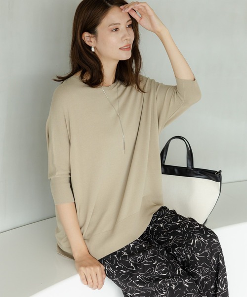 汗をかきやすい猛暑シーズンを乗り切れるニットシリーズ 接触冷感性の高い機能糸を使用した快適衣料素材でひんやりとした着心地が続きます。 吸湿性と吸汗性で汗の蒸れを軽減してくれるので大人女性の汗の悩みにも効果ありのニットです。 ややワイドなシルエットと抜け感のある襟元のデザインで涼しく快適に着ていただけます。 キレイな表面感なのでお出かけシーンやオフィスにピッタリです。 ーーー 【素材】 ・着用後も持続的な冷却効果で快適な着心地 ・吸湿性・吸汗性に優れた特殊な糸を使用 【悩みに“効く”ポイント】 ・オーバーサイズで身体のラインを拾わずにスッキリ見える ・2WAY着用できるので着回し力抜群