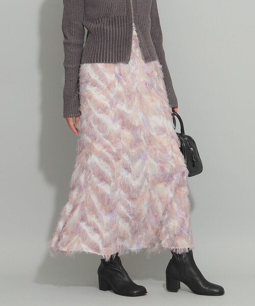美しく揺れるマーメイドシルエット■デザイン軽くて華やかな印象のスカート。毛足の長いカットジャカード生地にプリントを施したオリジナルテキスタイルで、他にはない風合いが魅力です。裾にむかって緩やかにフレアを入れた、女性らしいマーメイドシルエットがポイントのにひと品。■コーディネートスカートを主役にシンプルなトップスの合わせがおすすめです。■サイズ後ろウエストにはゴムが入っているので着心地も良く、着脱もラクにしていただけます。■素材薄手で軽いです。■ケア方法手洗い可 (詳細は商品についている品質表示ラベルをご覧ください)【GREY】Model:H168 B75 W60 H87 Size:1【BEIGE】Model:H165 B80 W58 H88 Size:1生地の厚さ:やや薄手透け感:なし伸縮性:なし光沢感:なし裏地:あり【スタッフレビュー】スタッフ:haru身長:152cm / 普段サイズ:0 / 着用サイズ:0サイズ感: 私の身長だとやや丈は長めですが、深めのスリットで抜け感が出ます。素材感: 柔らかい生地で動きやすい!ポイント: 他には無い淡いカラーのフリンジがかわいいです。ビスチェとセットアップでも着用もおすすめ! ※柄の入り方は1枚1枚異なります。予めご了承ください。※この製品は非常にデリケートな素材を使用しています。素材の特性上、強い力が加わると縫い目部分が広がり、開いたり、裂けてしまうことがあります。お取り扱いには十分ご注意下さい。※着用やクリーニングなどの摩擦により、毛並みの乱れや若干の毛羽抜けが起きることがあります。※光の当たり具合やパソコンなどの閲覧環境によって、実際の色味と異なって見える場合がございます。予めご了承ください。※商品の色味は商品単体で撮影した画像をご参照ください。※画像の商品はサンプルのため、実際の商品と「仕様」「色味」が異なる場合がございます。