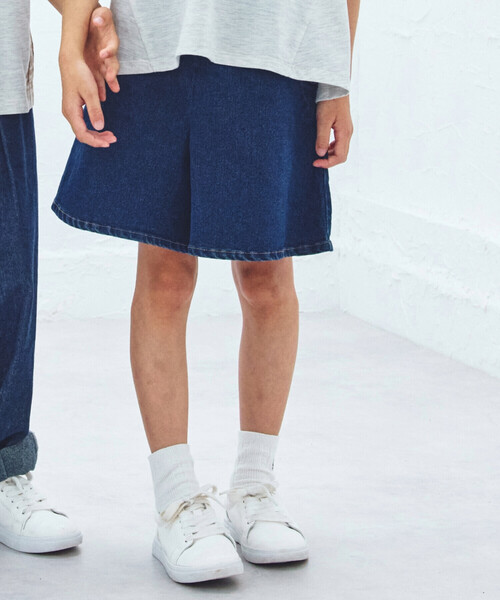 《デザイン》 着回し抜群のデニム素材によるキュロットスカートです。 程よい分量感ですので、どんなトップスを合わせてもすっきりと着回せます。 ポケット口はリボンアクセントになったデザインで、 シンプルながらもさりげない可愛いポイントになってます。 お子様一人でも着脱しやすいオールゴム仕様で、内側に調整口があります。 レギンスとのレイヤードスタイルも楽しめ、シーズンレスなアイテムです。 ベビーからキッズまで展開していますので、お揃いも楽しめます。 《リンクコーデ》 下記品番とリンクコーデとしてお召しいただけます。 ・ベビーサイズ(品番23-50FI01-204) ※在庫がない場合もございますので、予めご了承くださいませ。 《素材》 9オンスの程よい肉感で、着こんでいくほどに身体になじむ素材です。 インディゴ染料を使用していますので、洗いをかけるごとに色落ちを楽しめます。 ご自宅で洗濯機洗い可能です。 ※サンプルで撮影しておりますので、実物と若干異なる場合がございます。 予めご了承ください。 ※画像の商品はサンプルとなりますので実際の商品と仕様、加工、サイズが若干異なる場合がございます。 ※こちらの商品はFIVE FOXes独自の採寸方法となっています。 本サイトのサイズガイドと採寸方法が異なる場合がありますのでご了承ください。