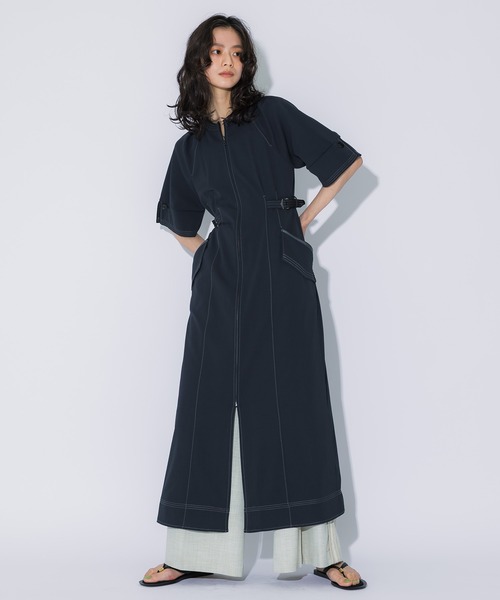 デザイン性がありながらも、シンプルで上品に着こなせるワンピースです! ■デザイン ・配色ステッチとシルエットがポイントの、一枚で決まるワンピース。 ・ウエストはサイドのベルトで絞ることができ、ネックの開きもお好みで調整していただけます。 ・足元次第でオンスタイルも、カジュアルダウンさせたスタイリングも楽しめるようなデザインと素材。 ■素材 ・エアリーな膨らみをもたせたポリエステル。 ・ナチュラルな表情と爽やかな風合いが特徴。 透け感:なし 裏地:なし 伸縮性:ややあり ■お手入れ方法 ドライクリーニング推奨 ---------------------------------------------------- 【お買い物をよりお楽しみいただく為に】 ▼商品のお気に入り登録をおすすめします! ♡をクリックしてください。 完売カラーの再入荷や、ラスト1点の通知、セールの際の通知を受ける事ができます。 ブランドのお気に入り登録もご一緒にお願い致します。