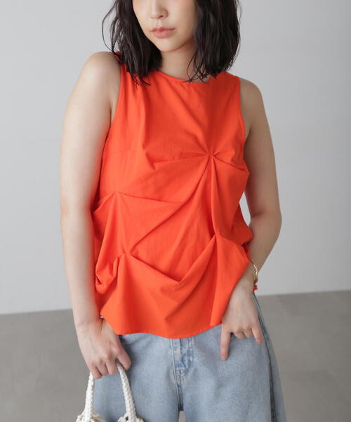 〔fabric&design〕 水洗い柔軟をかけたナチュラルな仕上がりのコットンタイプライターを使用。 盛夏にかけて適した素材です。 アシンメトリーにつまみ上げたタックで立体的なフォルムが出て、独特なボリュームの出るデザインブラウスです。 〔styling〕 ボリュームがあるトップスなので、ストレートラインなどのデニムやスラックスパンツとのスタイリングがスタイルアップしておススメです。 ■透け感:[ホワイト]ややあり[その他]なし ■生地の厚さ:普通 ■裏地:なし ■伸縮性:なし ■光沢:なし ■シルエット:スタンダード --------------------------------------------------- ◆商品のお気に入り登録◆ お気に入りアイテムの値下げ・再入荷・在庫1点などの通知を受け取ることができます。 ◆ブランドのお気に入り登録◆ 新商品や再入荷、セール、クーポン配布などお得な情報を受け取ることができます。 ---------------------------------------------------
