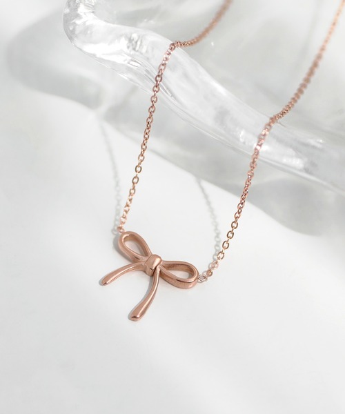 「ステンレス素材」のアクセサリーは、金属アレルギーや変色を起こしにくくデイリー使いにぴったりの優秀アイテム。 リボンモチーフが、胸元に大人可愛い雰囲気をプラスするネックレス。 甘くなりがちなリボンも、メタルのシャープな輝きでコーデに程よい甘さをプラスします。 ※ATTENTION※ ■微細なキズや製造ムラはすべての商品に含まれます。 ■変色しにくい加工を施しておりますが、ご使用状況によっては変色する場合がございます。 ご使用後は柔らかい布などでふき取りのお手入れや、メッキ製品同様の付け外しをお勧めいたします。 ■全ての方がアレルギーを起こさないという保証はできかねますので、万が一肌に合わない場合はご着用をお控えください。