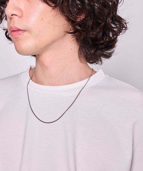 【 UNISEX 】さりげない細めのチェーンで上品で綺麗めな印象に。【 シルエット・デザイン 】細いチェーンを使い繊細でフェミニンに仕上げたネックレスです。シンプルなのでそのままでも、リングを通すなどアクセントになるネックレスにするのもおすすめです。細身のチェーンなのでジェンダーレスで着用できるデザインも嬉しいポイントです。【 カラー 】シルバーの1色展開です。【 アテンション 】アクセサリーをご愛用頂くにあたって、メッキ製品は体質によりかぶれを生じる場合がありますので皮膚に異常を感じた時は、ご使用をお止めいただき皮膚科専門医にご相談ください。雨、水、汗、湿気などによる色落ちや変色の可能性がありますので使用後は布等で優しく拭いて頂き、なるべく空気に触れない様に保管してください。長期放置やスプレー香料などの同時使用は特にお避け下さい。アクセサリーをつけたままの入浴や水辺での作業は厳禁です。本製品はデザイン性を重視し、繊細な仕上がりとなっております。過度な力が加わりますと破損する恐れがあります。お取り扱いには十分にご注意ください。※デザインの特性上、多少のサイズの誤差がある場合がございます。予めご了承ください。