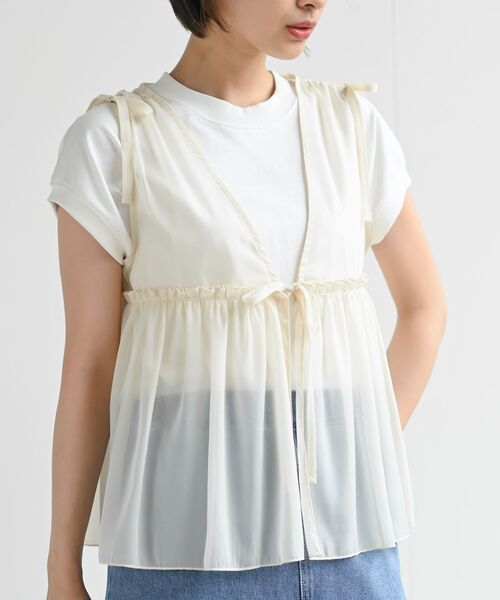 ☆2026/SS 再入荷☆コーデがワンランクアップするきらきらシアーベストほんのり光沢のあるシアー素材がコーデに華やかなムードを添えるベスト。透け感があるのでワンランク上のレイヤードスタイルが楽しめます。ふんわり軽いライトな素材でノンストレス。胸元のフリルやリボンでフェミニンな印象を与えます。肩のリボンを絞ればシャーリングデザインに。※再入荷の場合、生産時期が異なるため色・素材・サイズ・デザイン等多少異なる場合がございますので予めご了承ください裏地なし伸縮性なし薄手前開きリボン結び肩リボン調節可洗濯:手洗い可▼お気に入り登録でお得がいっぱい▼~商品をお気に入り登録~再入荷・ラスト1点などの通知を受け取ることができます!~ブランドをお気に入り登録~《rps》の新商品・再入荷情報をいち早くお届け!
