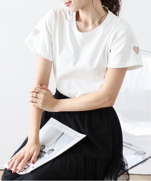 さり気ないハートのワンポイントが オシャレ見え? ベーシックでシンプルなTシャツを今っぽくアップデート 袖にハートのカッティングを加え、アクセントをプラス ちらりと除く肌がヘルシーな印象に。 さり気ないハートのワンポイントがオシャレ見え? 一気に周りと差を付けます。 カジュアルからキレイめまで、いつものコーデにプラス◎ シンプルで使いやすいTシャツなので 様々なアイテムとも相性よくコーデの幅が広がります。 1枚着はもちろんのとこ、サロペットやワンピースなどのレイヤード使いもおすすめです。 ■Fabric さらりとした肌当たりの良いカットソー生地 --------------- 透け感:ホワイト若干 裏地:なし 厚み:普通 伸縮性:若干 --------------- ▼《お気に入り登録》でお得な情報がいっぱい▼ ・「商品のお気に入り登録」で再入荷通知や、ラストの通知、セール通知も受け取ることができます。 ・「ブランドのお気に入り登録」で新商品や再入荷など、お得な情報を受け取ることができます!