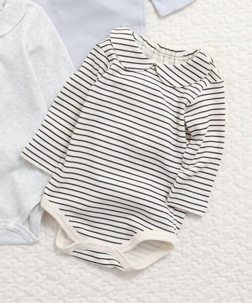 apres les cours(アプレレクール)のカバーオール・ロンパース「丸襟ボディスーツ」は、やさしいニュアンスのナチュラルなデザイン。ベビーギフトや出産祝いの主役にも♪【取り扱い表示】40℃を上限に洗濯機で洗濯、デリケートアイテムモード、ネット使用、漂白剤禁止、色物は同系の色と一緒に、洗濯後直ちに取出し、タンブル乾燥不可、日陰で吊り干し、アイロン禁止、商業ドライクリーニング不可【ご注意事項】この素材は、着用中の摩擦や洗濯により毛羽付着や毛羽脱落が生じることがあります。出来るだけ美しくご利用頂くために次のことにご留意下さい。○着用中、毛羽が他の商品に付着することがあります。○毛羽が他に付着した場合は、テープやブラシで除去して下さい。○他の製品とは一緒に洗わず単独でお洗濯して下さい。○タンブル乾燥はお避けください。※商品により多少の誤差が生じる事がございます。あらかじめご了承下さい。※ご使用のパソコンやブラウザの環境により、実際の色とは多少異なる場合がございます。※モデル着用写真についてはイメージの為、実際の商品とカラーや仕様が異なる場合がございますので、商品画像をご覧ください。【 apres les cours -アプレレクール- 】「キオク いろどる、こどもふく。」大切なキオクを彩る、お気に入りの一枚。「アプレ レ クール」は独自の色づかいやテキスタイルで日々をトクベツに過ごせるそんな「一枚」をお届けします。