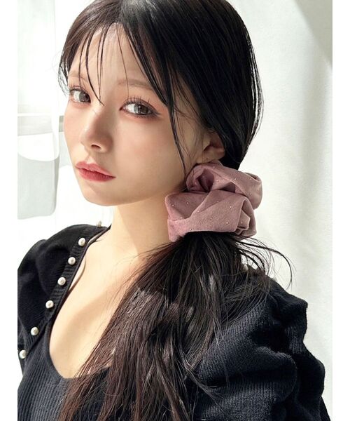 シーズンムードを高めるベロア生地のシュシュに、 小ぶりのストーンをふんだんにあしらい煌めきをプラス。 存在感のあるヘアアクセでコーデのポイントになること間違いなし! 春先にかけてロングシーズン活躍します◎