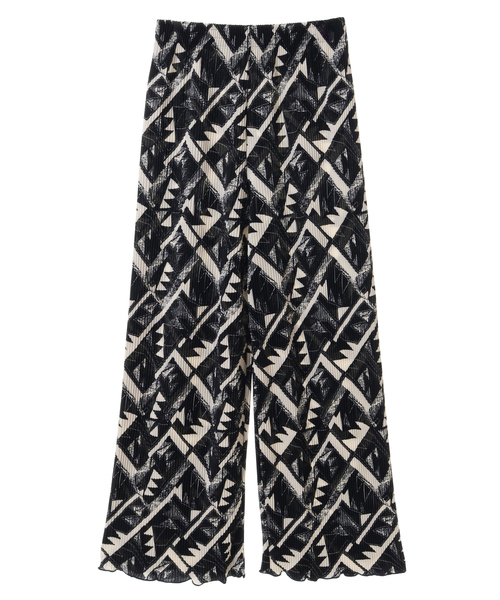 大好評のクリスタルプリーツストレートパンツシリーズの エスニック柄プリントの登場です! ●裏地なし ■point ストレートシルエット 裾のメローデザイン プリーツ生地 ウエストゴム ストレッチ抜群 ■detail 落ち感のあるストレートシルエットが美脚見えするパンツ。 裾のメローデザインがこなれ感を演出◎ 光沢感のあるプリーツ生地がスタイリング映えします! ウエストゴムなので着心地も良いです。 ■fabric ストレッチ抜群の素材は柔らかく着心地が良いです。 シワになり難く、ご自宅でお洗濯できるのでデイリー使いにおすすめです◎ 大好評のクリスタルプリーツストレートパンツリニューアル版