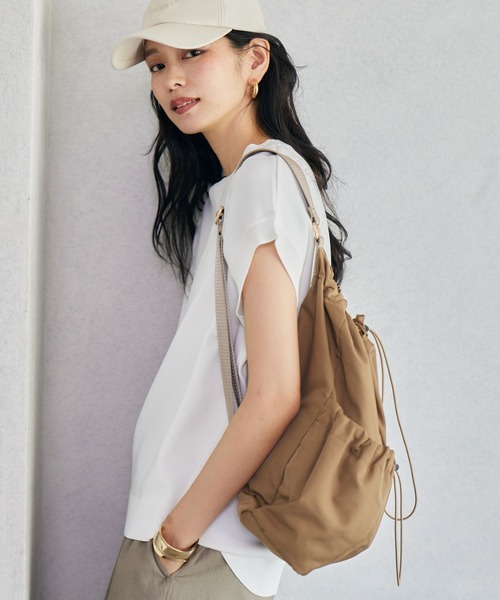 ワンショルダーがポイント。大人のキレイめカジュアルBAG ワンショルダーの巾着リュック。 肩に掛けたり、斜め掛けにしたり、気負わずラフに持てて抜け感が出るBAGです。 光沢素材で上品な印象もありながら、軽くてデイリー使いしたくなる1点。 【スタイリング】 トレンドのワンショルダーリュック。 スタイリッシュな印象でボディバッグよりも沢山ものが入ります。 サッと持ててアクティブなシーンでも活躍。 シンプルコーデのアクセントにも。 パンツスタイルはもちろん、スカートスタイルにも合わせやすいきれいめな 素材感です。 ワンピースに合せてスポーティ要素を加えるのもおすすめです。 お買い物をお得にもっと楽しく!上手な活用方法>>> ▼商品のお気に入り登録▼ 完売カラーの再入荷通知や、ラスト1点の通知、プライスダウンしたセール通知も受け取ることができます。 ▼ブランドのお気に入り登録▼ 新作や再入荷等、いち早くブランドのお得な情報を受け取ることができます。 【ご注意】 ※屋外の光や照明の当たり具合で、実際の商品の色味とカラー別画像の色味に若干の違いが発生する場合がございます。 詳細画像と併せてご確認の上、ご注文いただきますようお願い致します。 ※サンプルにて撮影をしておりますので、 実際の商品とは色味・仕様や加工・サイズ等が若干異なる場合がございます。 予めご了承くださいませ。