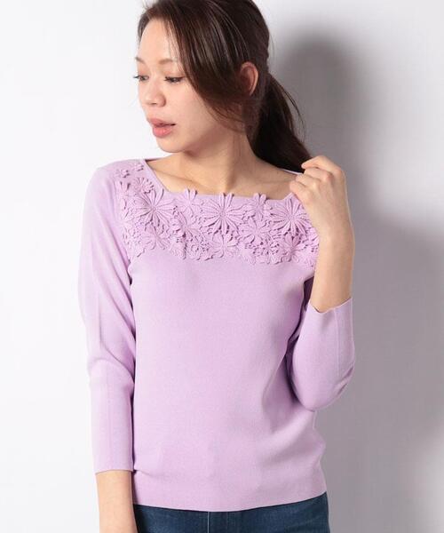 ネックラインに華やかなフラワーレースを飾った、フェミニンムードを加速させるニットプルオーバー。レースは本体のニットと同色でまとめることで華美すぎずシックな仕上がりに。フィット感のあるシルエットですっきりと着られる1枚です。 ※定価(税込)は、2021年05月28日のセール開始前の店舗における販売価格です。 13:肩幅35、バスト88、袖丈46.5、ゆき丈-、着丈-、身丈53 9:肩幅34、バスト82、袖丈46、ゆき丈-、着丈-、身丈52.5