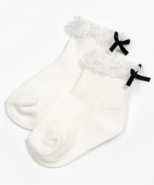 オーガンジーフリルにリボンをあしらった華やかなソックスです。 通気性と速乾性に優れた綿ポリエステルで快適なはき心地を実現しました。 かかとはぴったりフィットする設計で靴下の脱げを軽減。 足裏に転倒を防止する滑り止めがついているのもうれしいポイントです。