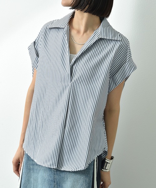 大人気!デイリーに活躍するストライプブラウスこれからのシーズンに活躍するストライプ柄素材を使用。トレンドレスな柄で、長く着ていただける1枚に仕上がっています。腕周りが華奢に見えるロールスリーブデザインがポイント。顔回りをすっきり演出してくれるスキッパーネックと、ボトムスにインしなくてもスタイルが決まるシャツヘムも魅力です。デイリーにデニム合わせはもちろん、ボトムにINしたきれい目スタイルにもお勧めです。体のラインを拾わないリラックスシルエットでスタイリングの幅もひろがるお勧めなブラウスです。■取扱いご自宅でイージーケア(手洗い)ができます。INTERPLANET/actuel(インタープラネット/アクチュエル)・conceptいつだって私らしく、私自身のスタイルが決まる。。。時代や年齢に媚びない『らしさ』を纏って生きる女性へ。旬なベーシックと抜け感のあるカジュアルをMIX。そんな大人カジュアルコーデを提案します。・お気に入りの登録についてショップ、ブランドのお気に入り登録でクーポンやタイムセールの通知などお得な情報を受け取ることができます♪また、気になるアイテムのお気に入り登録でセールや再入荷の通知など受け取ることができます。