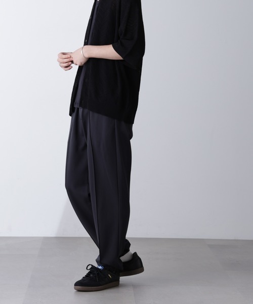 【2024 AW】NANO universe(ナノ・ユニバース) 『大人が定番で履きたいモダンな快適美脚パンツ』快適な履き心地を実現しつつ、より綺麗なシルエットを追求したピンタックパンツ。 ハリコシのあるジャージ素材を使用しており、ストレッチ性を兼ね備えた上品で快適な履き心地が魅力の1本。 ナノ・ユニバースのどのアイテムにも合わせることができる美脚アイテムです。 ―DETAIL― ・美脚と快適な履き心地を叶えたピンタックパンツ ・ジョガータイプの1本 ・綺麗なシルエットなライン、美脚を追求したシルエット ・ストレッチ性を兼ね備えた快適な着心地が魅力 ・幅広いスタイルにマッチするアイテム ―FABRIC― ・ハリコシのあるジャージ素材 ・洗濯機使用可 ■取扱方法 単独洗いをして下さい。 もみ洗いは、避けて下さい。 濡れたままの放置や、長時間の浸漬はしないで下さい。 形をととのえてから干して下さい。 ネットを使用してください。 あて布を使用してください。 アイロンや乾燥時の熱の影響により、色合いや風合いが変化する可能性があります。着用中の摩擦や洗濯により、毛羽立ちや毛玉(ピル)が生じる事がありますので、お取扱いにはご注意ください。 ▼商品のお気に入り登録 お気に入りアイテムの再入荷や残り1点の通知を受け取ることができます。 ▼ブランドのお気に入り登録 新作アイテムの入荷や人気アイテムの再入荷、タイムセールやクーポンなど、 いち早くブランドのお得な情報を受け取ることができます。 ※サンプルにて撮影、採寸を行う為、実際にお届けする商品と仕様やサイズが異なる場合がございます。予約時は生産の都合上、お届け予定時期が前後する場合もございますので、予めご了承下さい。 ※光の当たり具合や撮影環境により色味が異なる場合がございます。正しい色味はスタジオ画像の色味をご参照ください。