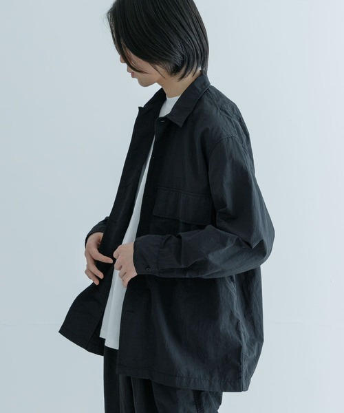 アウター感覚で着用できるワークシャツシワになりにくいナイロンタッサー素材を使用し、汎用性の高いシャツに仕上げました。両胸にはやや大きめのフラップポケットを配し、羽織り感覚で着用可能なマルチな1着に。軽量性もあり、持ち歩きにも適したシーズンレスなシャツアウターです。同素材のボトムスも、セットアップスタイルとして提案します。シリーズアイテム・UR46-14B005 ナイロンタッサーコンバーチブルパンツ【2024 Autumn/Winter】【24AW】※商品画像は、光の当たり具合やパソコンなどの閲覧環境により、実際の色味と異なって見える場合がございます。予めご了承ください。※商品の色味の目安は、商品単体の画像をご参照ください。▼お気に入り登録のおすすめ▼お気に入り登録商品は、マイページにて現在の価格情報や在庫状況の確認が可能です。お買い物リストの管理に是非ご利用下さい。素材感透け感 :なし伸縮性 :なし裏地 :なし光沢 :ややありポケット :あり