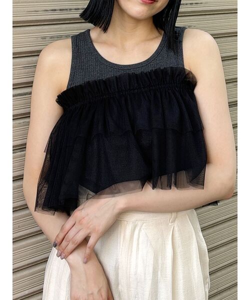 【SUMMER COLLECTION】様々な着方が楽しめるマルチウェイトップストレンドのチュールで旬なコーデが完成!■アイテムリブのタンクトップとチュールの付属アイテムがセットになったマルチウェイアイテムです。それぞれ別々で使用できるので、ロンTやスウェットに重ねたりシャツやジャケット等のモードなアイテムに付け足すだけでも今年らしい着こなしになります。たすき掛けや、ビスチェ風等、ご自身でアレンジして頂けます。ラフなパンツと合わせて抜け感のあるスタイリングに。--------------------------------------------透け感:なし 生地の厚さ:普通伸縮性:あり サイズ感:普通--------------------------------------------【知って得する便利機能◎ 】■商品のお気に入り登録再入荷時、ラスト1点の時にお知らせします。■ブランドのお気に入り登録新商品やお得な情報など、いち早くお得な情報をゲット!ぜひご活用ください。※着用画像はフラッシュの加減で実際の製品と色味等が異なる場合がございますので、生地のズームアップ画像をご確認ください。※ご利用の端末画面の設定により実際の商品と色味が異なる場合がございます。