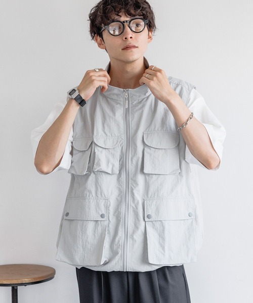 ーーー ■ポイント ・フロントに多数のポケットを施したミリタリー感のあるナイロンベスト。 ・収納力の高い多ポケシャツは利便性とファッション性を兼ね備えた一着〇 ・アームホールを広くとることで厚手のインナーとも合わせていただけます! ■デザイン・シルエット ・機能性・デザイン性が備わったマルチポケットベスト。 ・幅広いレイヤードスタイルをお楽しみ頂けるオーバーサイズ/ルーズシルエット。 ・アームホールを広くとることで厚手のインナーとも合わせていただけます! ・裾のドローコードを絞ることで丈を調節しお好みのスタイルに! ■素材 ハリ感がありしっかりとシルエットが強調される素材感! ナイロン100%の素材で高級感のある質感で仕上げました〇 ====== ■参考サイズ M:~175cm L:175cm~ ====== ーーー ■スタイリング トレンドのテックコーデにぴったりなナイロンベスト。 Tシャツやスウェットなどシーズンに合わせたインナーに合わせるだけでお洒落なスタイルが完成! カーゴパンツやデニムパンツなどのカジュアルパンツとの相性が特におススメです!