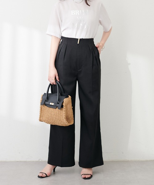 【2024AW natural couture】 osonoパンツにNEWバージョンが登場! ■Design 大人気osonoパンツからワイドデザインタイプが登場しました。 さらりとした素材感で夏のお仕事ブラウスにピッタリのアイテムです。 フロントのタックとセンタープレスで縦ラインを強調。 INスタイルだとゴールドバーが映え、おしゃれな着こなしに。 後ろゴムは柔らかく、楽々な着心地です。 後ろポケットはフェイクポケットです。 ■Styling きれいめブラウスと合わせれば、通勤コーデとして活躍します。 あえてロゴTなどを合わせてカジュアルダウンさせたコーディネートもおすすめ。 ゴールドバーがおしゃれで、周りと差が付くアイテムです。 ■Fabric さらっとした肌触りで夏も快適にお召頂けます。 カラーリングは、ベーシックに合わせやすいライトベージュ、大人っぽいグレー、 綺麗見えのラベンダー、万能に合わせられるブラックの4色展開です。 ================ お手入れ方法:手洗い 透け感:ライトベージュややあり 裏地:なし ポケット:あり 伸縮性:なし 光沢感:なし 生地感:さらりとした生地感 ================ ※着用、お取り扱いの際は、商品に付いている品質表示とアテンションタグを必ずご確認ください。 【お気に入り登録でお得な情報がいっぱい】 ・「商品のお気に入り登録」で再入荷通知や、ラスト1点の通知、セール通知をいち早く受け取ることができます。 ・「ブランドのお気に入り登録」で新商品や再入荷など、お得な情報を受け取ることができます! ※店舗の入荷時期は商品によって異なります。 店頭の在庫状況につきましては各店舗にてお問い合わせください。 ※撮影時の光の関係で、画面上の画像と実際のお色とでは若干の色差が生じる可能性がございます。 また、ご覧いただいているモニター画面や、お使いのブラウザによっても、お色の違いがございますことをあらかじめご了承くださいませ。 20240705 2024AW_natu 24AW