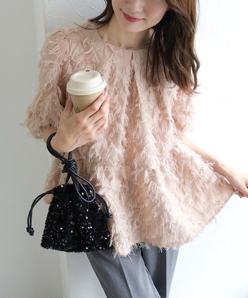 素材感が魅力の一枚“ジャカードギャザーフレアブラウス” 毛足のあるフリンジジャカードを使用した、表面感がトレンドライクな一枚。 デザインが華やかで一枚で着映えるデザイン。やや広がりのあるボリュームスリーブで、手首が華奢見えします。 -ママさん、プレママさんにもおすすめ!- シルエット: 締め付けない、ゆったり、体型カバー、着痩せ、楽ちん 着用時期: 産前産後、妊娠初期〜後期、臨月 スタイル: マタニティ対応、プレママ、おしゃれママ、時短コーデ 透け感:あり 伸縮性:なし 裏地:なし ポケット:なし ファスナー:なし 全カラー透け感が生じます。 ※素材の特性上、カラーによってフリンジの風合いが異なります。 【ブランド】 Pierrot(ピエロ) 【お買い物を楽しむための方法】 **商品のお気に入り登録** カートボタン横の♡をクリック! 気になるアイテムが完売しても再入荷のお知らせ通知や、在庫ラスト1点の通知、セールの通知が届きます。 **ブランドのお気に入り登録** ブランドトップページの「♡お気に入りブランドに追加」をクリック! 新商品や再入荷など、クーポン配布などのお得な情報を受け取ることができます。